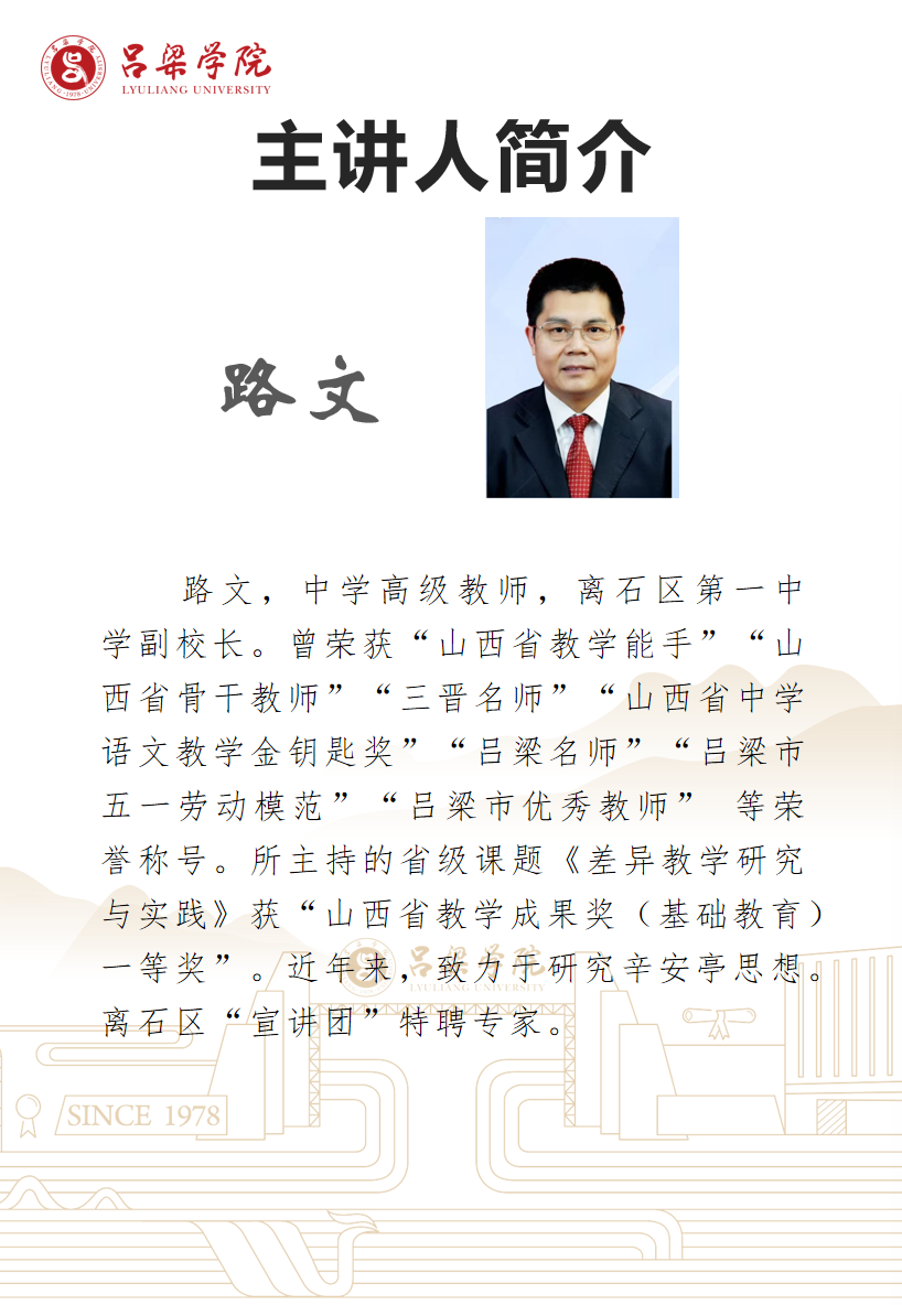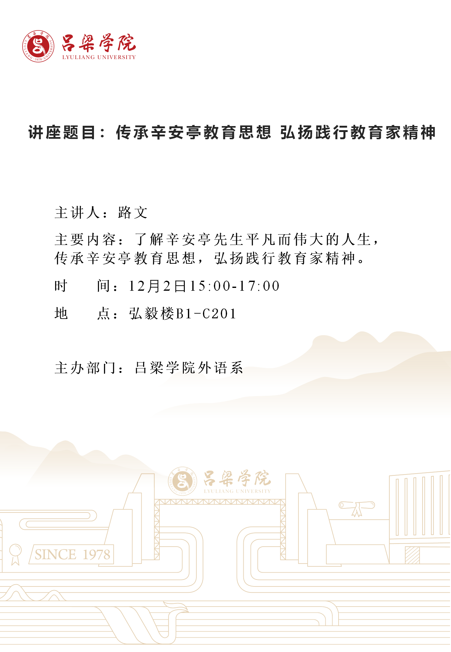讲座题目:传承辛安亭教育思想 弘扬践行教育家精神